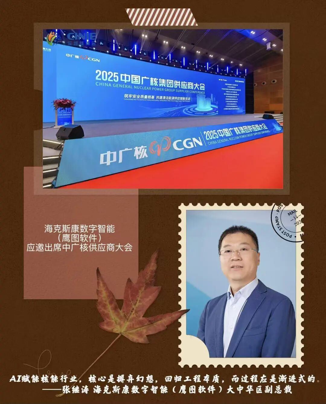 会议期间,张继涛先生还受邀出席中国广核集团供应商大会,与产业链伙伴深入交流。他表示,海克斯康数字智能(鹰图软件)将进一步加强与国内核电企业的战略协作,通过集成化软件平台与智能化工具,支持核电站全生命周期管理,为行业提供更高效、更安全的数字化服务。