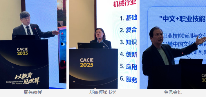 随后,全国机械职业教育教学指导委员会秘书长郑丽梅与北京市教育国际交流协会会长、原北京市教委副主任黄侃分别就“职业教育国际化的挑战与机遇”及“国际产教融合的若干思考”展开阐述,从职业教育和国际交流的视角,深入剖析了新时代的挑战、机遇,并分享了相关思考,为论坛奠定了坚实的政策与理论基石。
